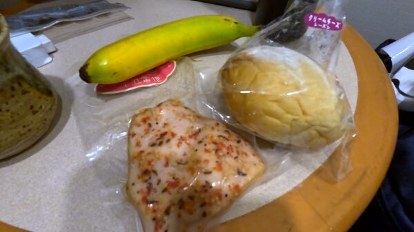 初日に買ったバナナと昨日買ったパンとハーブチキンで朝ごはん。