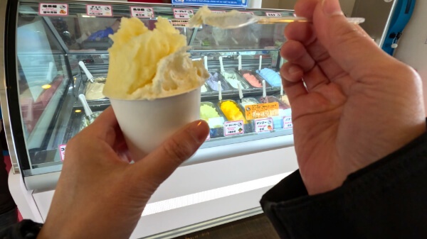 ゴールのミルミルさんでジェラートをいただきます。映えをまったく無視した白×白。