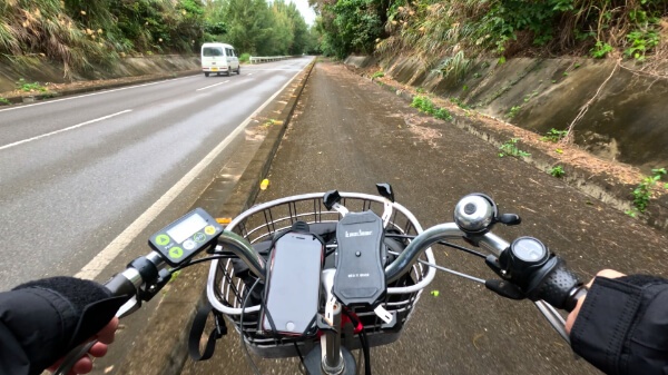バリバリ公道も歩きます。車ともすれ違ったり追い越されたりします。