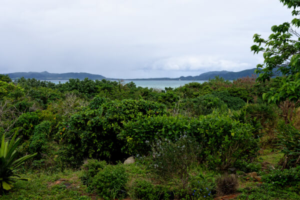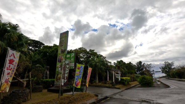 せっかくレンタサイクル(しかも電動機付き)があるので、そのまま市街地とは反対方向へ。一瞬晴れてきたのでこのまま自転車で川平湾まで行っちゃう!?とか思ったりもしたんだけど、走ってるうちにやっぱりまた雲ってきたので目的地をやいま村に変更。