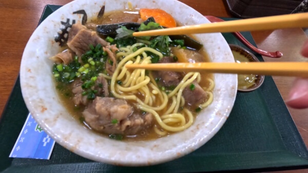 お肉ごろっごろの八重山そば。ちなみにメニュー見ながら魚系の定食と迷いに迷ってオーダーしたら、しばらくして「すいません材料がなくなったみたいで…」「あ、じゃあさかなの定食で」「あの、やっぱり材料あったみたいなんですけどどうします?」「あー…じゃあそばで」とすったもんだしたそば。美味しかった。