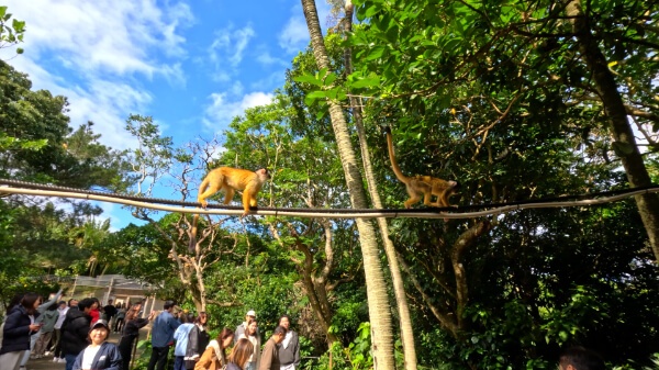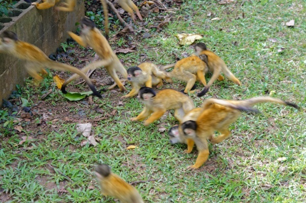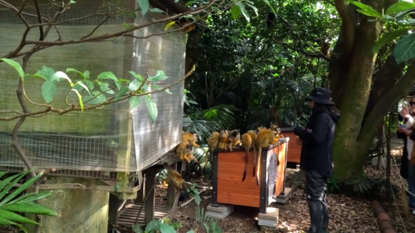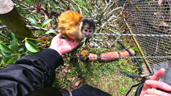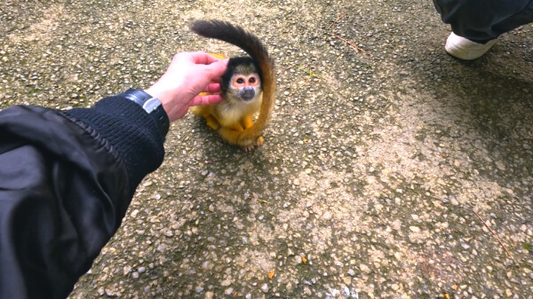 たまに手とかに乗ってくれることもあるし、移動するリスザルに肩とか踏まれている人もいる。