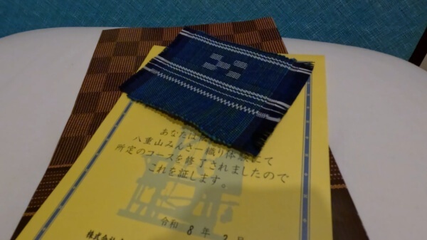 まずはゆらてぃく市場で今日の晩ご飯をゲット。その後、初日にミンサー織を体験したお店に完成品を受け取りにいって、さらにマックスバリュでお土産を買ったりして、いったん宿に荷物を置いてから自転車を返却してきました。