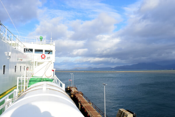 なんかしらんけど船を降りるのにめちゃめちゃ時間がかかった。徒歩の旅客は一番最後、ってことだったんだけど待機場所に集まってから20~30分待った気がする。