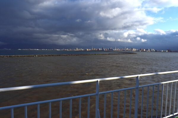 雲は多いけど晴れてよかった。ちなみに結構風が強くて風上側はスプラッシュマウンテンぐらいの波しぶきが上がってとても外に出てられる状況じゃなかった。