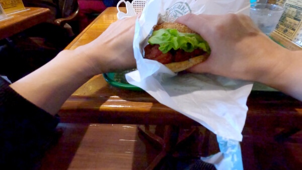 毎回おんなじもの食べてるけど今日もやっぱり看板メニューのチャイニーズチキンバーガー。