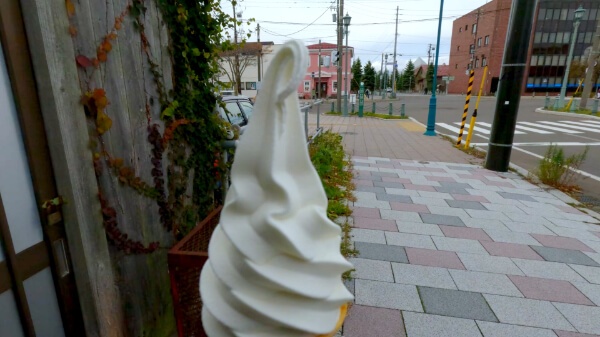 紅葉を求めて赤レンガ倉庫へ向かう途中、早朝に気になって写真だけ撮ってたカフェが開いてたので、ソフトクリームをゲット。お店の前の椅子におっちゃんが腰かけて美味しそうにソフトクリーム食べてたから一旦通り過ぎて戻ってきた。笑