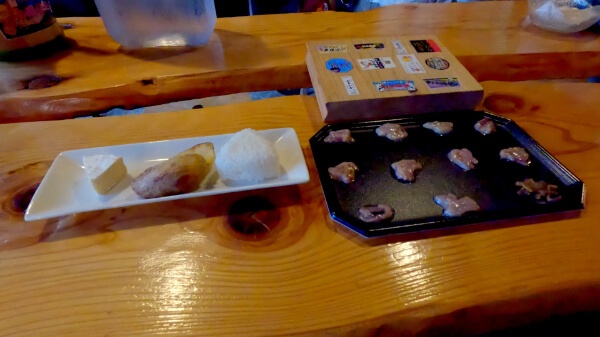 こちらが塩辛食べ比べセット(塩辛のお供付き)。塩辛+じゃがいもは知ってたけど、塩辛+カマンベールチーズのマリアージュは新たな発見でした。