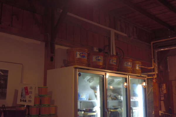 こちらの塩辛はすべて昔ながらの木樽で自然発酵させて作っているとのこと。函館は塩辛も有名らしいんですが今となっては木樽で作っているのはもうここしか残ってないとか。手間ひまもそうだけど木樽自体が手に入りにくくなっているのも理由みたい。醤油とかでも聞く話だなあ。どうなる日本の食文化。