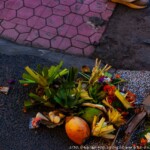 早朝から整ってるお供え物。いつだれがお供えしてるんだろ。