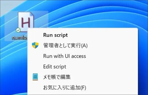 numlock.ahk を右クリック →「Run script」で実行。