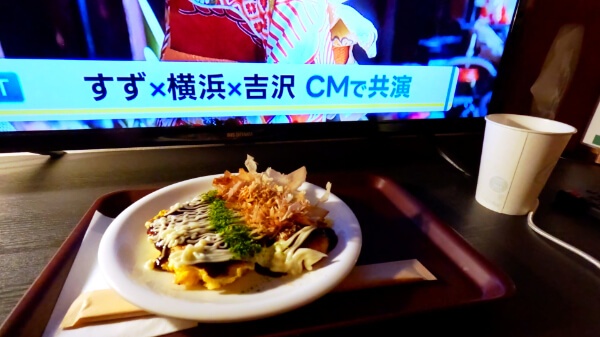 食事メニューにお好み焼きとたこ焼きセットが追加されてたので喜んで注文。