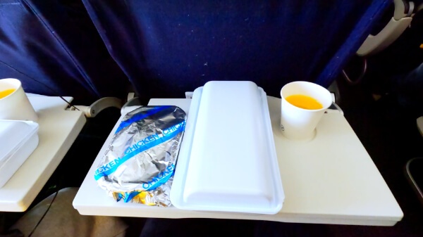 機内食はこんな感じで配られた。これまた初めてのスタイル。
