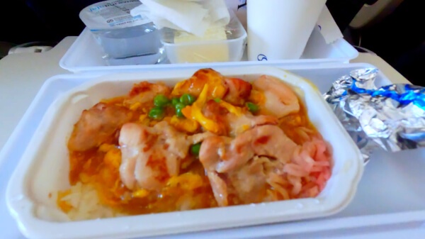 機内食は韓国系を予想して特別食にしなかったんだけど親子丼みたいなのがきてしまった。