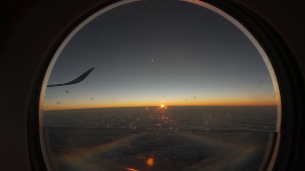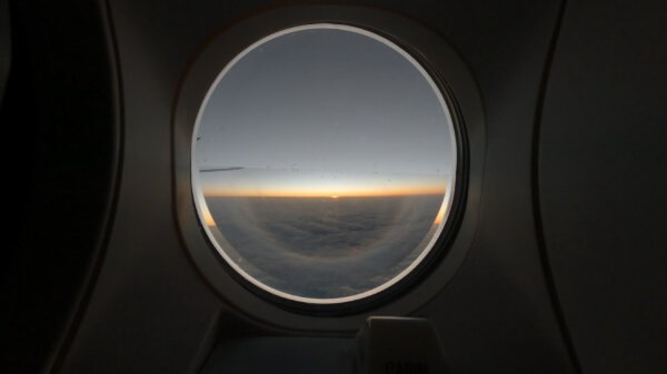 ギャレーの横の窓を覗くとちょうど日の出だった。