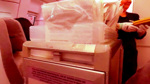 目が覚めてトイレに行くついでに後方のキャビンでお水とスナックをもらう。