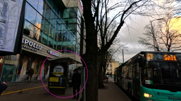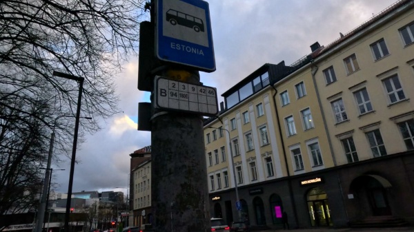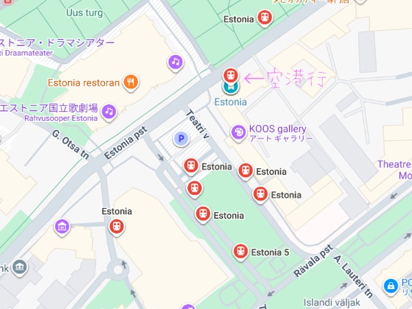 そしてバス停名は「Estonia」なんですが、Estoniaっていう名前のバス停、やたらめったらいっぱいあるんですよ。しかもこう、バスロータリーになってて「〇番乗り場」ってあるタイプじゃなくて、乗り場が通りのあっちとこっちとむこう側に分かれてるやっかいなタイプ。