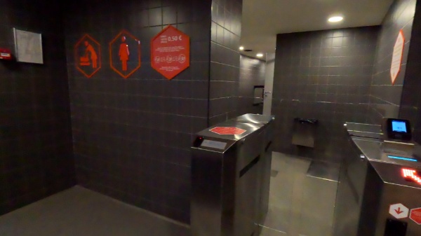 その隣にトイレ。有料0.5€でカードも使えます。