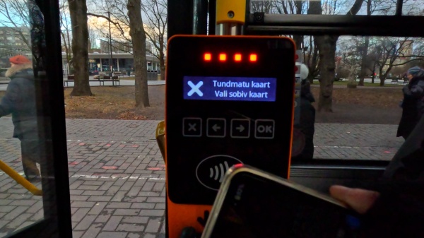 なんてことをゴタゴタやってても扉は勝手に閉まって勝手に発車するので焦らなくて全然大丈夫です。なんせタリン市民はバス無料らしいので、このリーダーを利用するひとはほとんどいません。