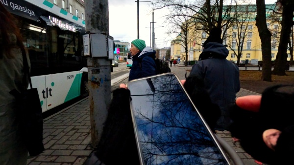 まあ、バルト駅行だから最後まで乗ってれば降り間違うことはないだろうって思って安心してたんだけど、なぜかGoogleマップの行先を「バルト駅」にすると「バルト駅」まで行かずに手前の「ホテルエストニア」って停留所で降りろ、って言われる。