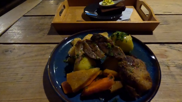 そしてこちらがそのローストポークなんですが…めちゃくちゃ美味かった。塩加減が絶妙。お肉も柔らかくてホロホロ。14€(2800円)でもまあ許す、って思った。お肉もボリュームあるし蒸かしたジャガイモが丸ごと2個ついててお腹いっぱいになりました。