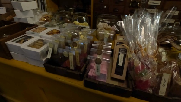 中に入ると、昔の商店になっていてカウンターの向こうには店のおばさんがちゃんといます。
