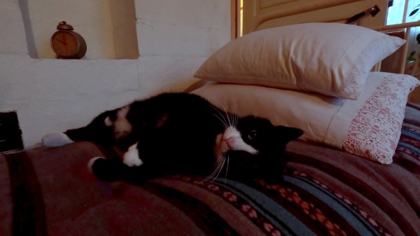 入ってすぐ手前のベッドに置かれている猫のぬいぐるみに目がいく。