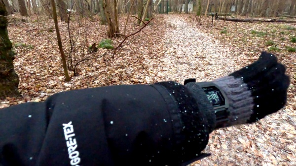 ところで道がなんか白いな?こういう砂が敷き詰められてるのかな、って思ったら雪(アラレ?)でした。