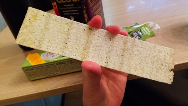 味はチップスターとかプリングルスとかと同系統。薄くてパリパリしててなかなか美味しい。