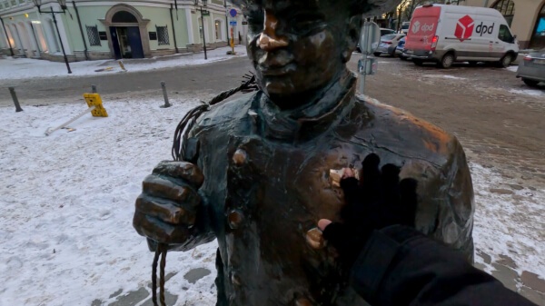 しばらく明けていく街を眺めて、次いで「あと旧市街で行き忘れているところどこだ?」と探してて見つけた「煙突掃除人の像」を探しにいきます。