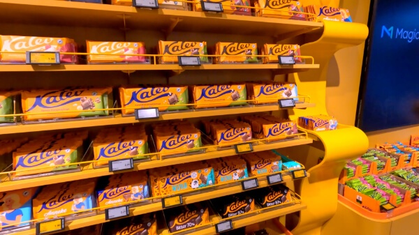 エストニアが誇るチョコレートメーカー「カレフ」の本店へ。こちらのお店は旧市街の外にある商業地区の一角にありました。