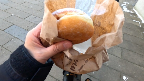ということで無事買えたシナモンロールのついでに買ったパンをかじりながら移動。