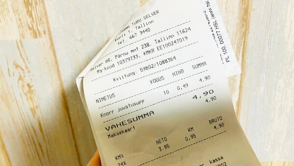 Selverではお目当てのスープ10袋だけを持ってレジへ。ここのレジは有人レジなんですが、並んでたら前の男性が「どうぞお先に」みたいな感じで列を譲ってくれたので、わたしは(なんか買い忘れはったんかな)ぐらいな気持ちで軽く会釈して会計へ。サッカー台でリュックにスープを詰めてたら、さっきの男性が来てエストニア語(たぶん)で話しかけてきたので、「I don’t speak Esti」って言ったら、さらに「なんとかかんとかRussia?」って言われたんだけど、まったく何訊かれているかわからなかったので「NO~」って言って逃げてきた。なに?この平たい顔がロシア語をしゃべるように見えたのか?謎。